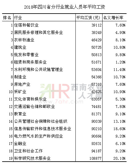 近日,四川省统计局发布2018年全省全部城镇单位就业人员平均工资,分行业门类看,农林牧渔业46429元、增长8.1%;分经济类型看,国有单位就业人员平均工资为90390元、增长12.5%,城镇集体单位就业人员平均工资为59146元、增长7.3%,内资外资和港澳台投资单位就业人员平均工资为68853元、增长12.4%,城镇私营单位就业人员平均工资为43352元、增长8.1%。